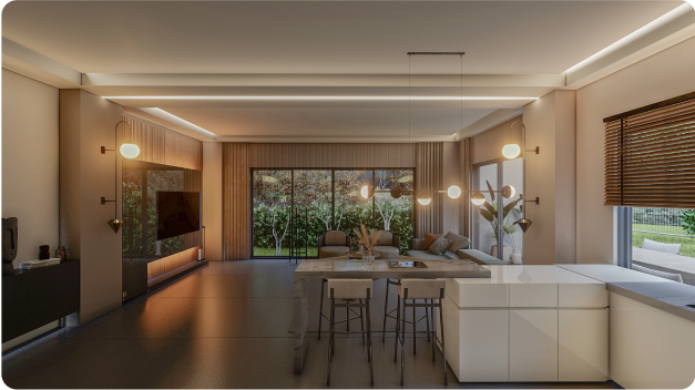 В жилом комплексе представлено 250 квартир с различными вариантами планировочных решений: 1+1, 2+1, 3+1. Кухню и гостиную мы объединили в общее пространство для отдыха, в каждой квартире также предусмотрен балкон, терраса или собственный сад.